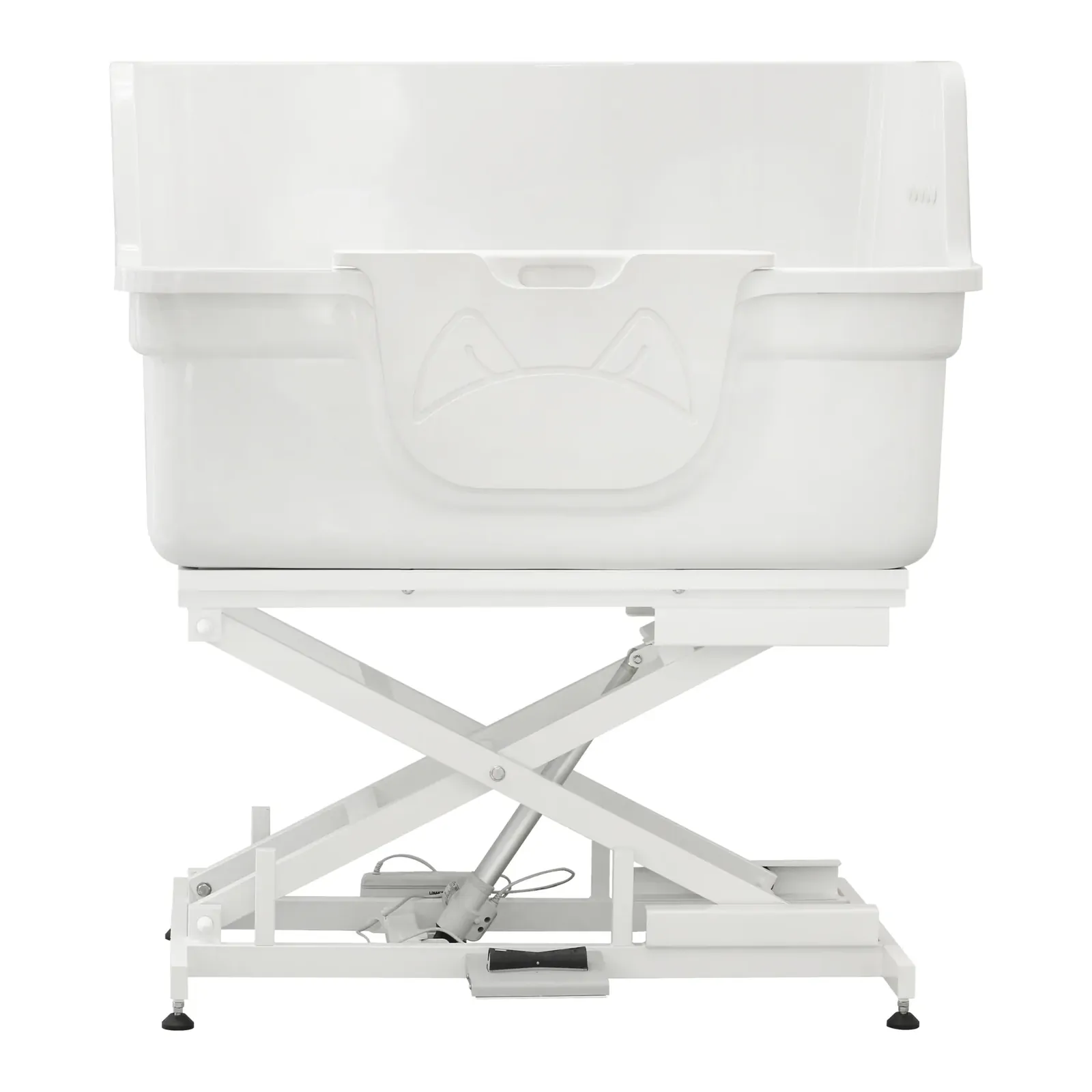 Its electric lifting system, powered by a high-quality LINAK actuator and transformer, allows smooth and stable height adjustment at the touch of a button. The tub can be lowered to approximately 35 cm (14 inches) from the ground for easy access by large or senior dogs, and raised to around 95 cm (37.4 inches) for comfortable, ergonomic working height, helping to significantly reduce strain on groomers.