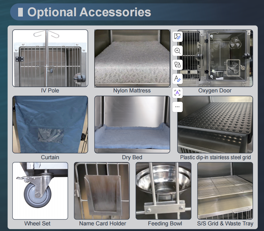 - Strong front door made of 8mm and 6mm stainless steel rods makes for a safe and secure area, with other options like transparent door for theapy purpose.