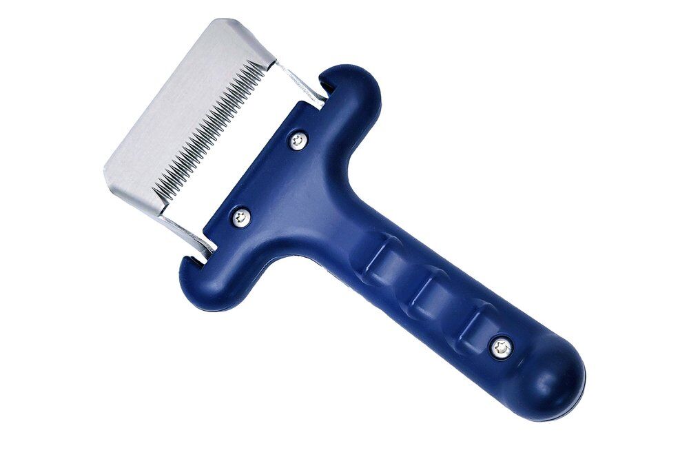 The Coat Tender is a safe, non-aggressive carding tool for groomers and pet owners which is designed to remove loose coat, undercoat and coat that is at the end of its life cycle within the hair follicle. This tool is designed with a high-quality stainless-steel carding blade to properly remove coat from shedding breeds. This patented design has an ambidextrous, in-line flexible handle with a pre-set angled blade suitable for all skill levels.