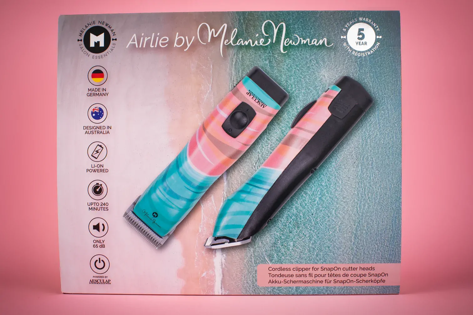The Airlie by Melanie Newman clipper is the culmination of decades of grooming expertise. It has been designed to capture the beauty and individuality of Australia’s Airlie Beach where turquoise waters meet the soft sands. Each clipper features a unique water-transfer design, making each clipper distinct and no two identical in appearance.