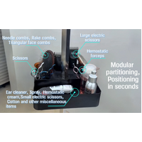 - Including spaces to hold a wide array of grooming tool eg clippers, brushes, combs, scissors and nail clippers.
