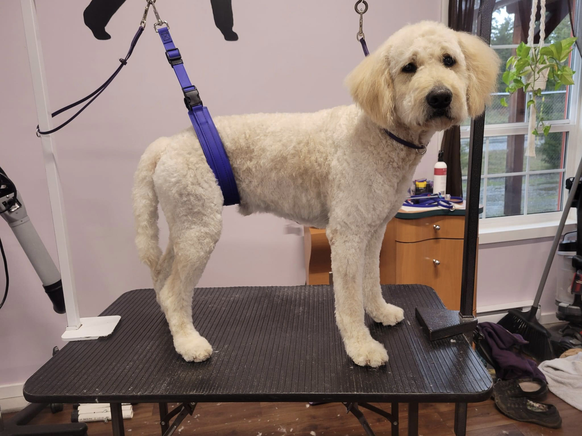 This set has one small and one large strap to cover all your needs. Super strong to hold up even your most stubborn sitters, or to give your older dogs support. The best part is they are made of biothane so waterproof and so easy to clean and sanitize between dogs!