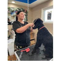 - ELEGANTLY FUNCTIONAL - Elevate your professional image with a touch of flair. Featuring a stylish rhinestone zipper and a rounded collar, this grooming smock combines practicality with elegance, ensuring you feel confident and polished during every client interaction.