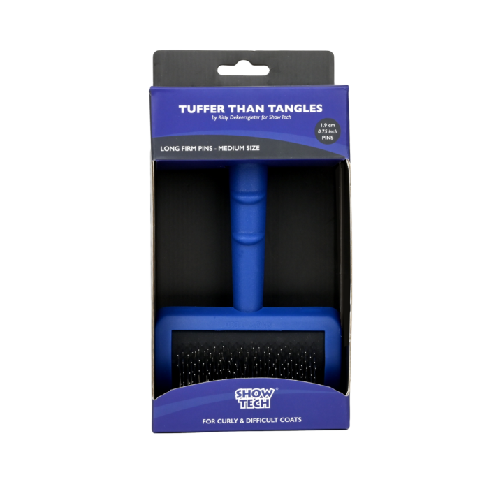 The SHOW TECH Tuffer Than Tangles professional Slicker Brush is perfect to brush and de-mat long, curly and difficult coats. With its strong pins you can easily brush the coat without causing damage.